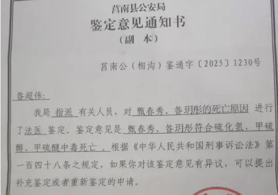 2025年11月28日凌晨2点,张某的那个地下化工窝点又一次进行剧毒废物违法排放,废物产生的硫化氢、甲硫醇、甲硫醚气体通过下水管道或窗户缝隙再次侵袭了甄春秀母女居住的房间。这一次,命运没有眷顾这对母女。监控记录下了她们生命的最后一刻。当昝玥彤的班主任王老师发现品学兼优的昝玥彤早晨没到校上课,不断联系昝玥彤的家属,昝玥彤的爷爷让邻居过问,邻居发现异常并报警时,甄春秀和昝玥彤已经因同样的剧毒气体中毒身亡。 12月10日出具的尸检报告证实,母女二人及此前冰柜里的三只猫,均死于硫化氢、甲硫醇、甲硫醚中毒。